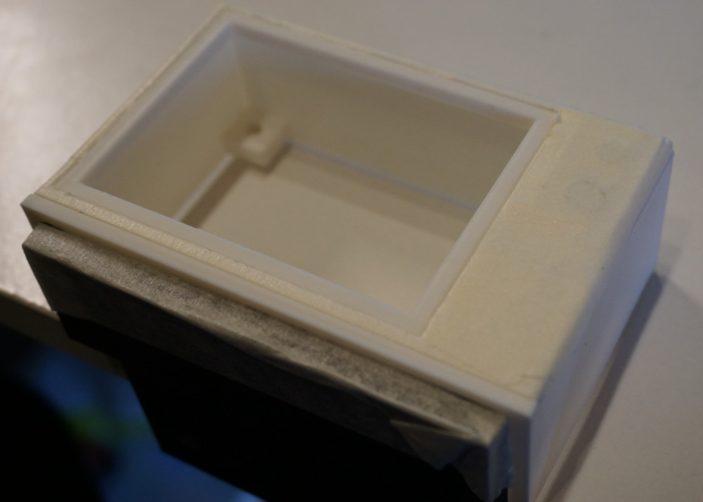 To make it look more like the real thing, some color was needed. I used acrylic to paint the outer surface of the TV, trying to mimic woodgrain and plastic colors as well as possible. To avoid accidentally mixing colors i used masking tape to cover parts that I did not want painted.
